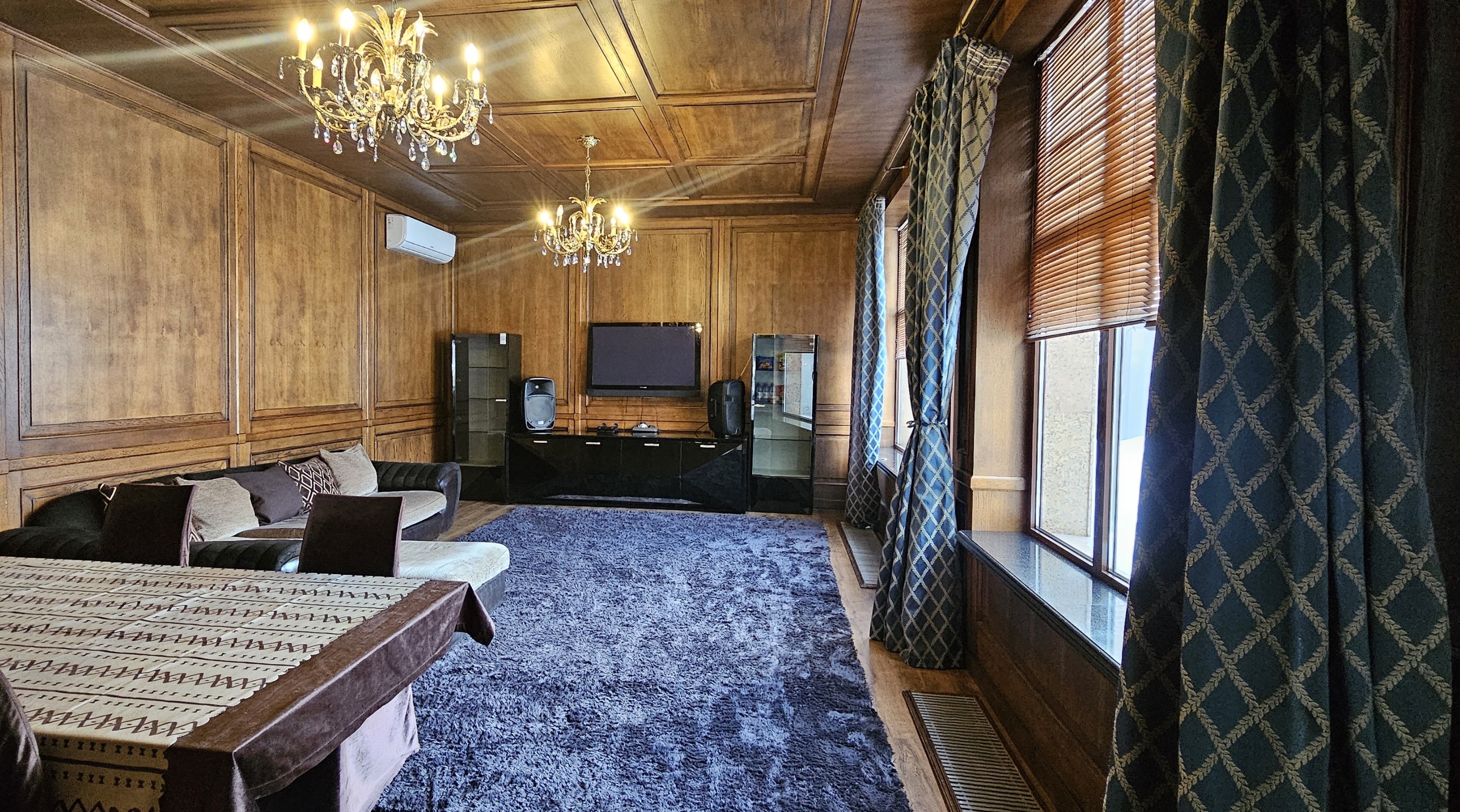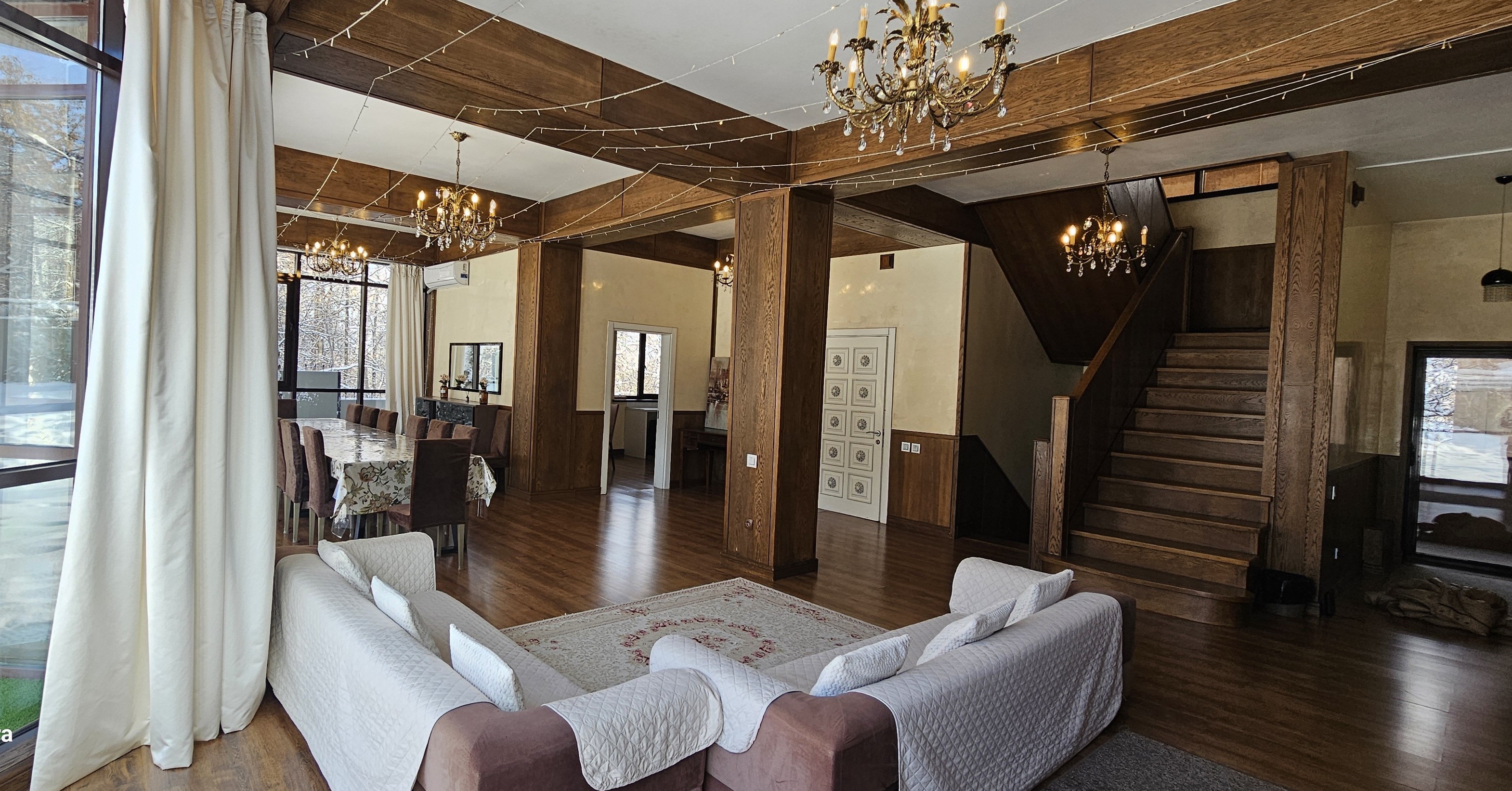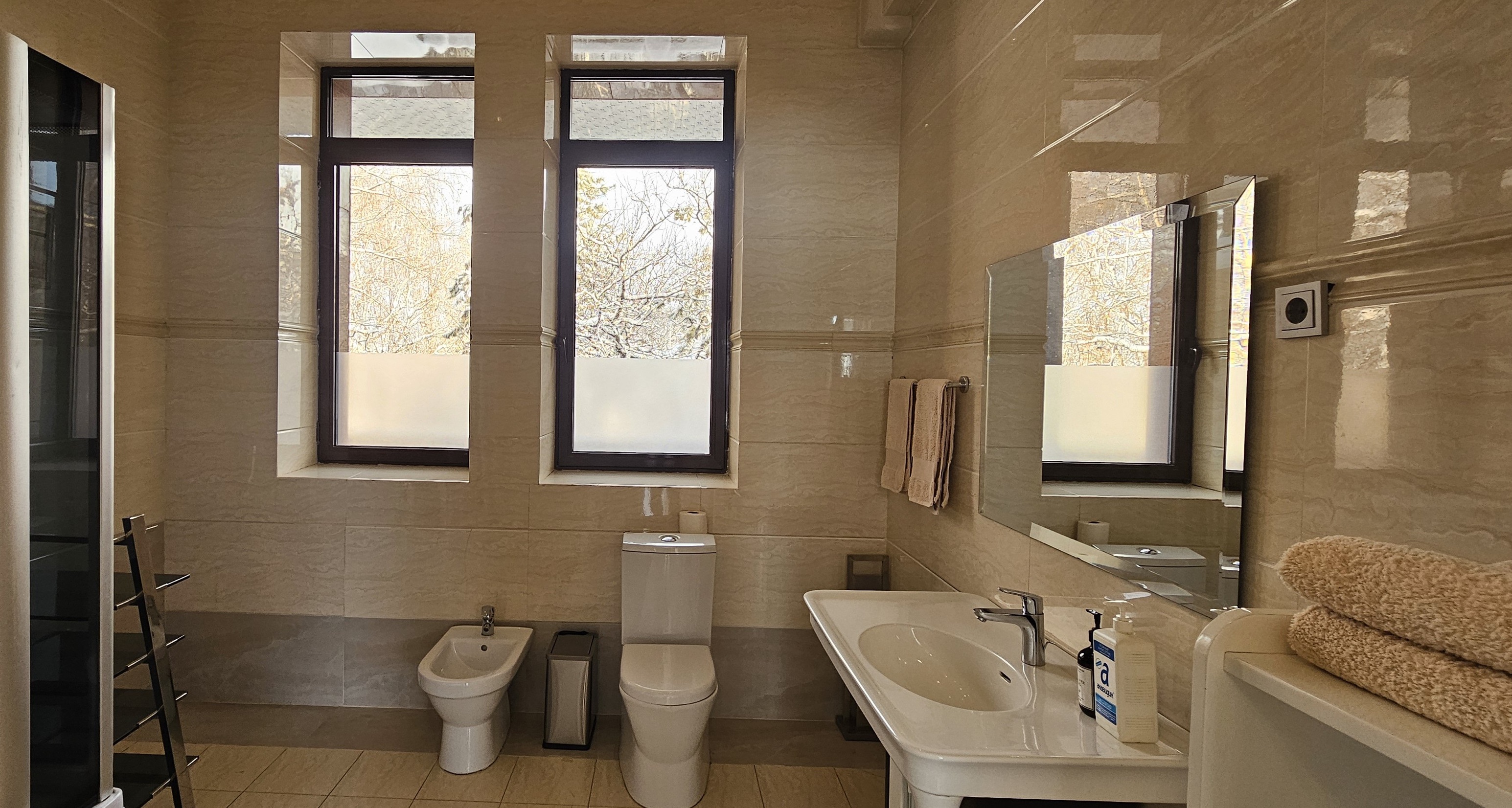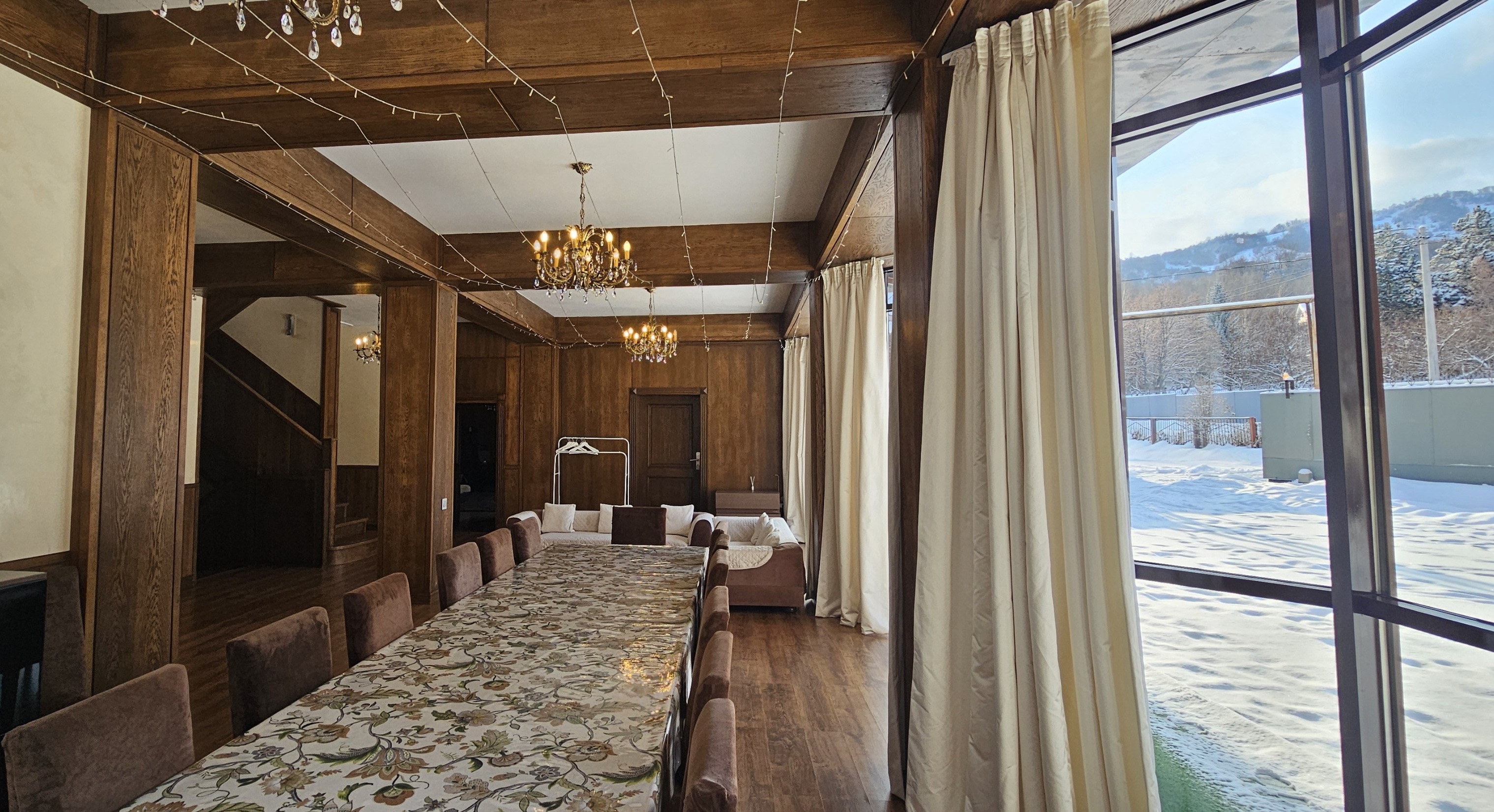 Honey Apartments - четырёхуровневый особняк площадью 650 м², расположенный среди гор и леса, всего в двух километрах выше отеля Royal Tulip и в семи километрах от катка Медеу. Панорамные виды, чистый воздух и простор делают это место идеальным для семейных торжеств и частных мероприятий. В доме есть терраса с видом на горы, бильярдная, кинотеатр, караоке AST Home с 25 тысячами песен и игровая приставка PS4. Кухня полностью оборудована посудой и принадлежностями на 15 персон, предусмотрены Wi-Fi, полотенца, дополнительное постельное бельё и средства гигиены. На участке - мангальная зона с казаном и шампурами, а также парковка. По запросу доступны услуги повара, официантов и оформление мероприятий. Всё здесь продумано так, чтобы отдых в горах Алматы был комфортным, тёплым и запоминающимся.