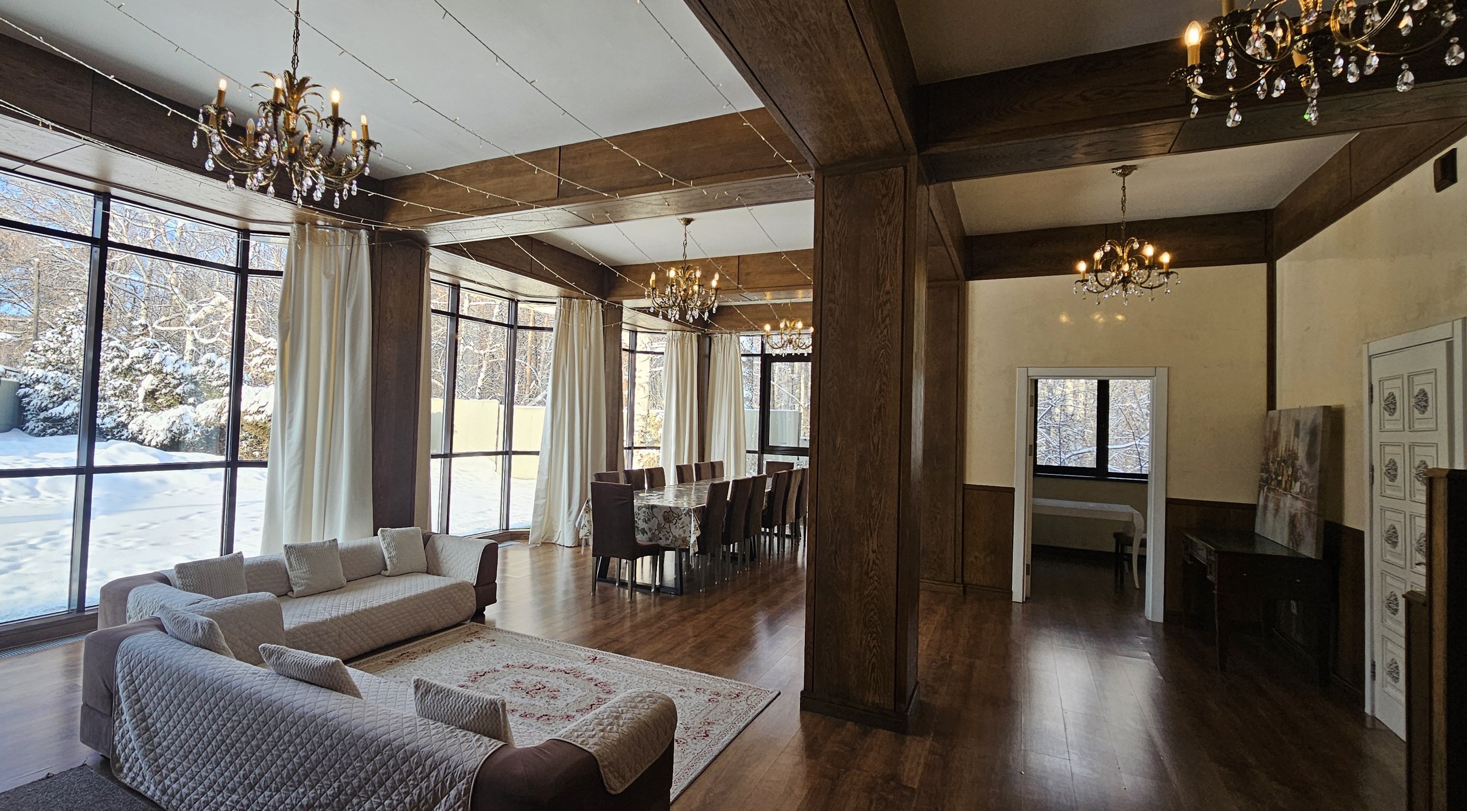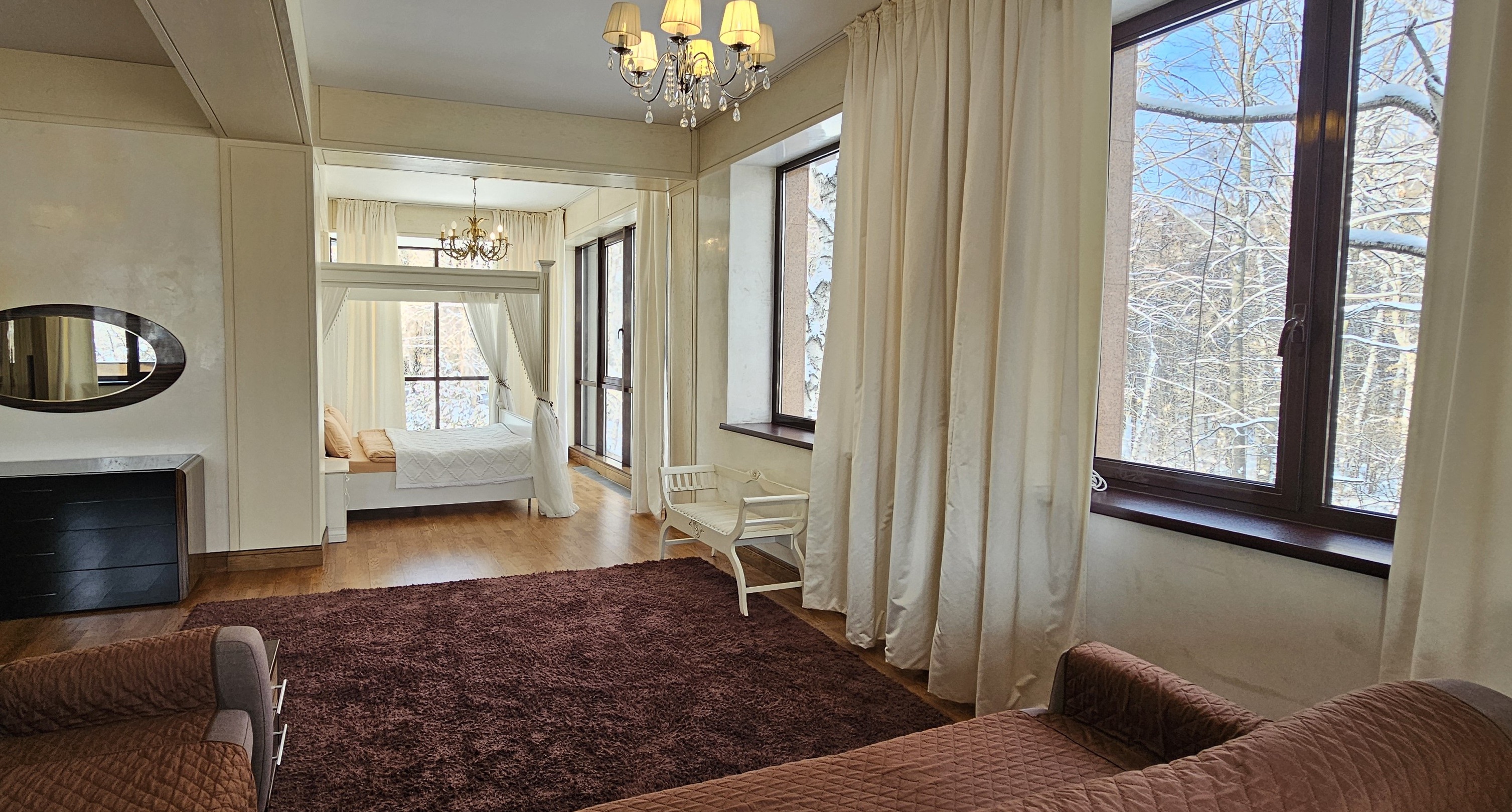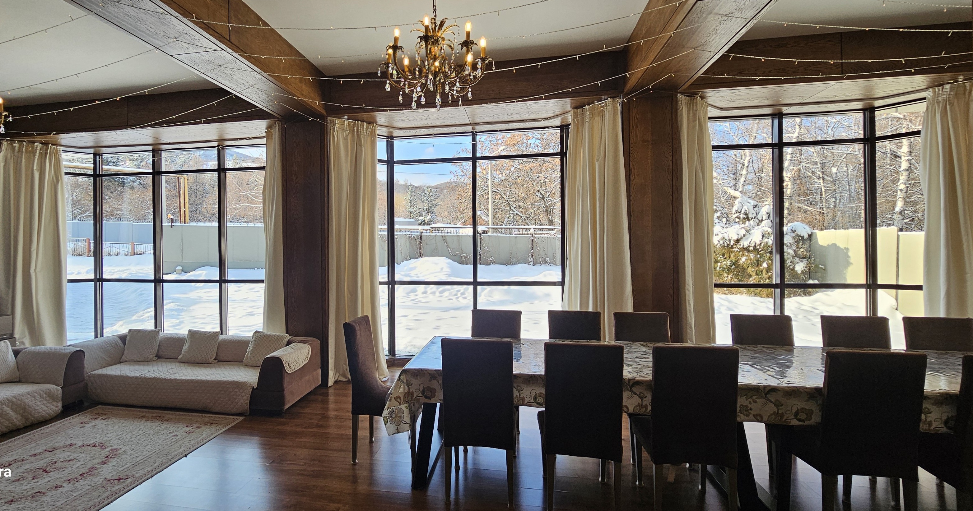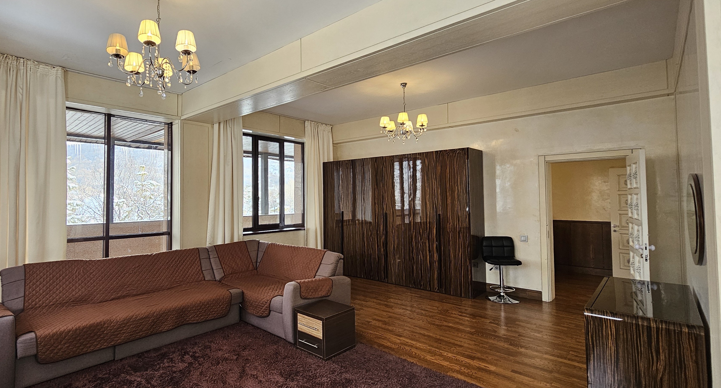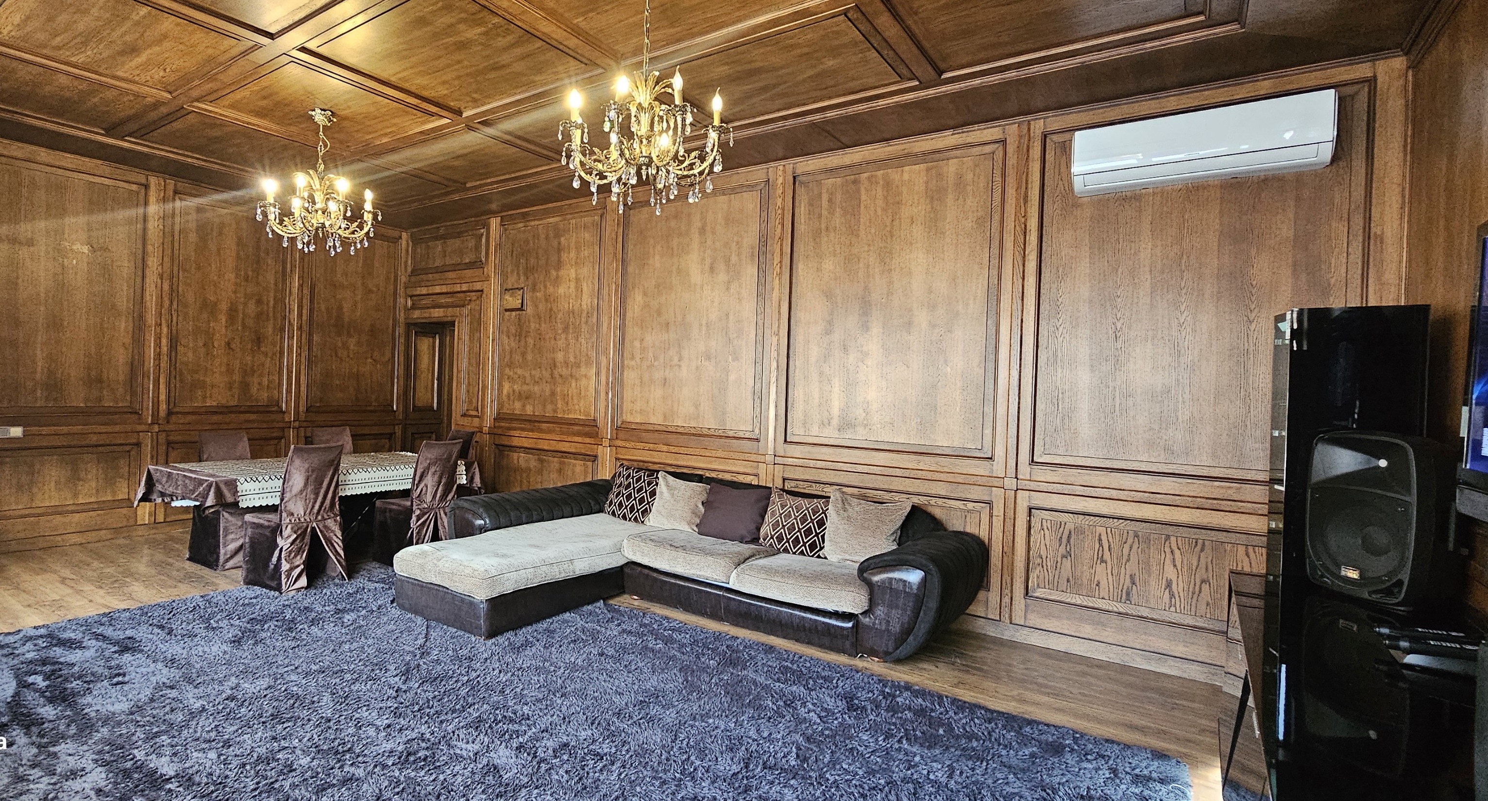 Honey Apartments - четырёхуровневый особняк площадью 650 м², расположенный среди гор и леса, всего в двух километрах выше отеля Royal Tulip и в семи километрах от катка Медеу. Панорамные виды, чистый воздух и простор делают это место идеальным для семейных торжеств и частных мероприятий. В доме есть терраса с видом на горы, бильярдная, кинотеатр, караоке AST Home с 25 тысячами песен и игровая приставка PS4. Кухня полностью оборудована посудой и принадлежностями на 15 персон, предусмотрены Wi-Fi, полотенца, дополнительное постельное бельё и средства гигиены. На участке - мангальная зона с казаном и шампурами, а также парковка. По запросу доступны услуги повара, официантов и оформление мероприятий. Всё здесь продумано так, чтобы отдых в горах Алматы был комфортным, тёплым и запоминающимся.