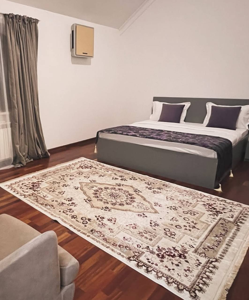 Стильный апарт-отель в тихом районе Алматы. Просторные номера с панорамными балконами и видом на горы Заилийского Алатау. В каждом номере: бесплатный Wi-Fi, холодильник, биде и кондиционер. На территории работает бар и общая кухня. Удобная локация для тех, кто ищет спокойствие и комфорт. Бесплатная парковка для гостей.