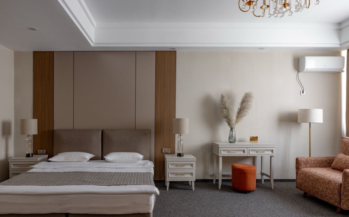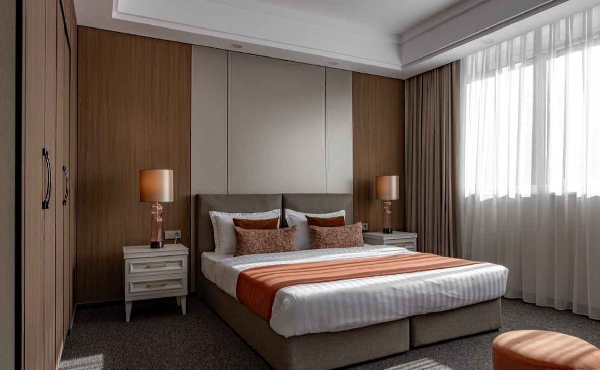 Современный отель в Алматы с захватывающим видом на горы Заилийского Алатау. Стильные номера, спокойная атмосфера и чистый воздух предгорья. Удобная локация для тех, кто хочет совместить комфорт и близость к природе. Подходит для романтических выходных и деловых поездок. Бесплатный Wi-Fi и парковка.