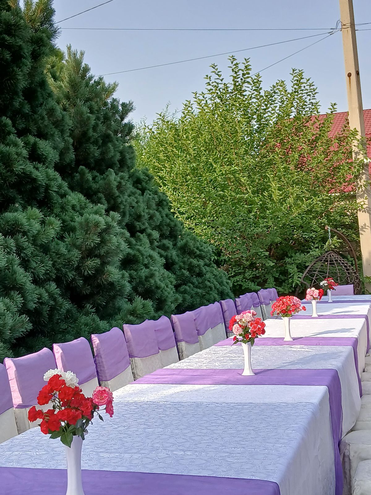На территории доступны: большой бассейн, топчаны для отдыха, мангал, казаны на дровах, посуда и всё необходимое для проведения мероприятий, баня с бассейном, большая парковка, видеонаблюдение по периметру.