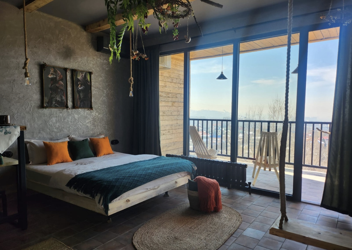 В верхней части Алматы, всего в нескольких минутах от проспекта Аль-Фараби, находится KoktobeAparts - современный комплекс домиков с панорамным видом на город и горы. Здесь ощущается тишина пригорода и одновременно близость к городской жизни. Просторные номера с большими окнами наполняет дневной свет, а по вечерам отсюда видно, как медленно загораются огни Алматы. Для гостей предусмотрены терраса для отдыха, кондиционер, бесплатный Wi-Fi и удобная парковка. Уединённое расположение делает это место одинаково комфортным для коротких выездов за город и спокойного отдыха без лишней спешки.