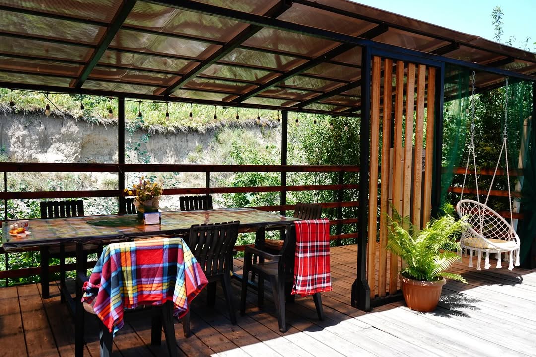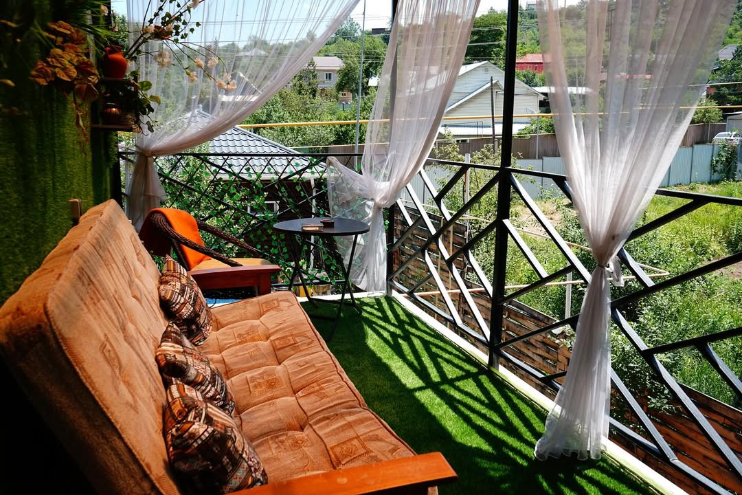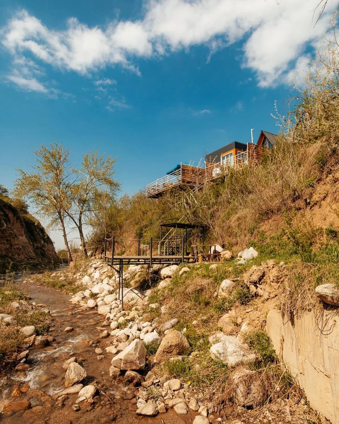 В предгорьях Алматы, на берегу реки Каргалинки, расположен Nasha Dacha - комплекс стильных коттеджей с видом на горные просторы. Здесь сочетаются чистый воздух, свет и тишина с архитектурой в стиле хай-тек и ощущением единения с природой. Гостям доступны три формата домов: дом в стиле хай-тек, дом-треугольник и дом для двоих - каждый с собственной террасой и личным спуском к реке. Внутри предусмотрено всё для комфортного проживания: гостиная зона и кухня с техникой, ванная комната с ванной и косметическими принадлежностями, кондиционер, Wi-Fi и телевизор с кабельными каналами. На территории обустроены сад, сауна, общий лаундж, бесплатная парковка и прокат велосипедов для прогулок по живописной местности.