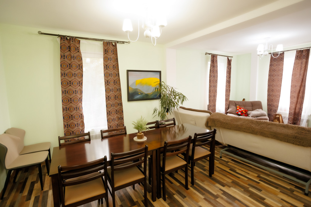 Дом Света в Tay-Village - просторный дом для компании до 12 человек, где каждая деталь создана для уюта и отдыха. Здесь тёплая атмосфера, тишина и зелёное окружение делают время неторопливым и светлым. В доме - три спальни, удобные для семей или друзей, полностью оборудованная кухня с посудой и свежие комплекты постельного белья. После прогулок можно расслабиться в собственной бане или устроиться в гостиной с большим экраном и мягкими диванами. На улице - мангал и место для барбекю, а вокруг - живописные виды и природа Алматы, которые будто специально созданы для спокойных вечеров в кругу близких.