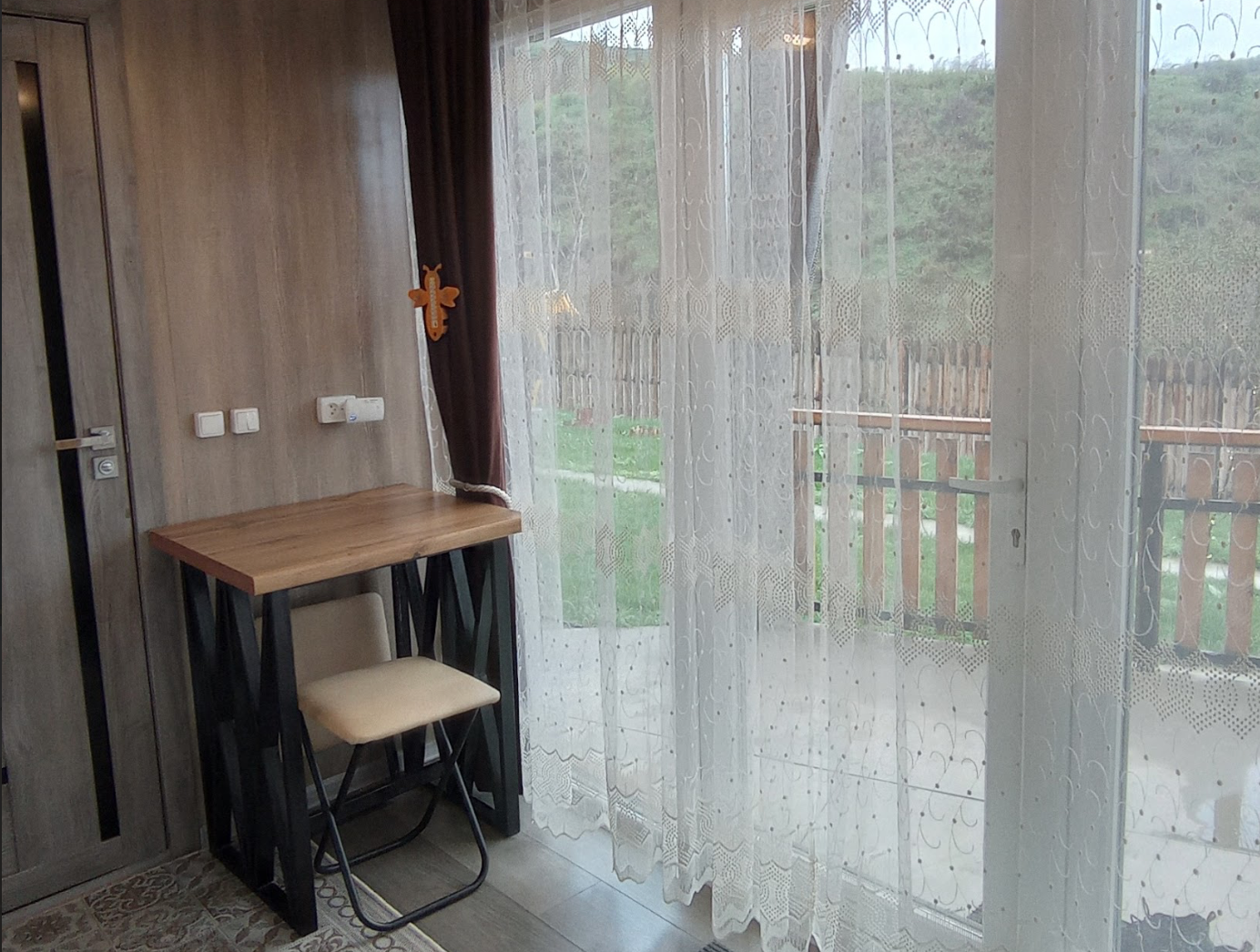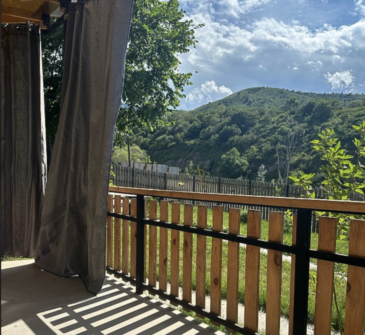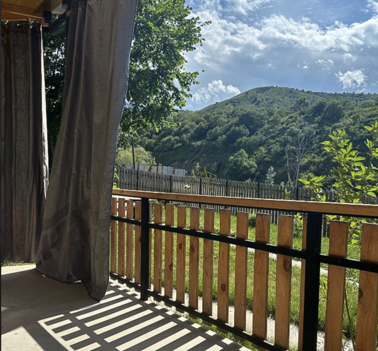 Возле территории протекает речка, можно прогуляться по горам, подняться на плотину, при хорошей погоде видно город и с плотины, и с нашей территории. Баня электрическая, но парная обшита качественной вагонкой, поэтому внутри такой же натуральный запах парной.