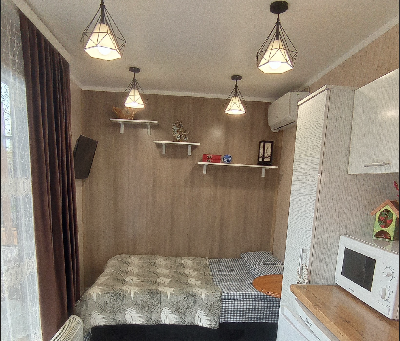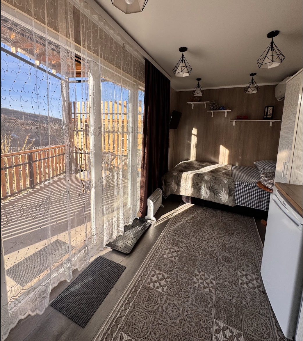 В стоимость входит проживание в домике, домик оснащен всей техникой для вашего удобства - холодильник, микроволновка, чайник, электроплита, телевизор со смарт-функцией, вайфай, фен, бойлер. А также посуда, постельное белье, полотенца, средства личной гигиены, тапочки.